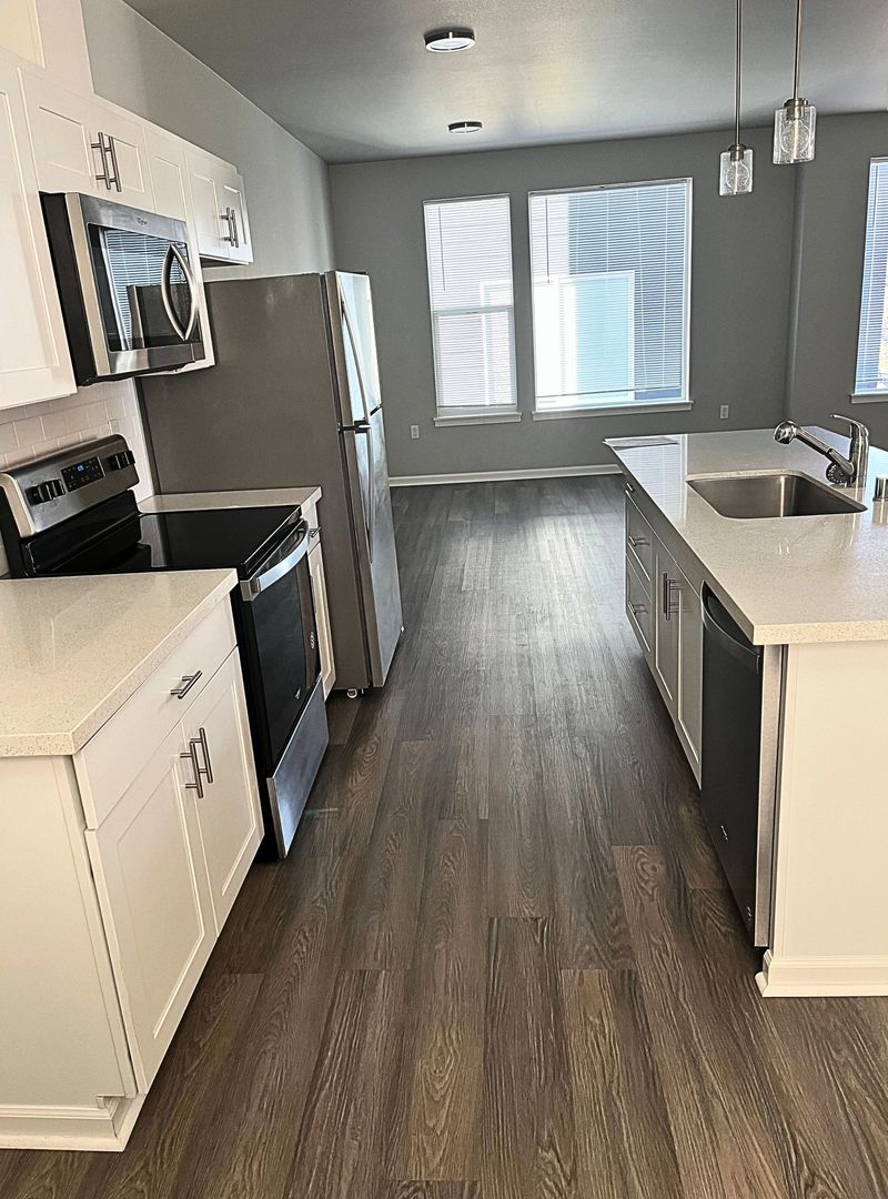 Welcome to this beautifully designed, newly built two-bedroom, two-bath townhome located in a private gated community. This spacious home features large windows that bring in abundant natural light, creating a bright and inviting atmosphere. Luxury vinyl flooring runs throughout the main living areas, with carpeting on the stairs for added comfort. A full-size washer and dryer are conveniently located in the unit for everyday ease. Situated in a small, well-maintained community, residents enjoy a quieter living environment while still being close to shopping, daily conveniences, and major commuting routes. Call us to schedule a tour!